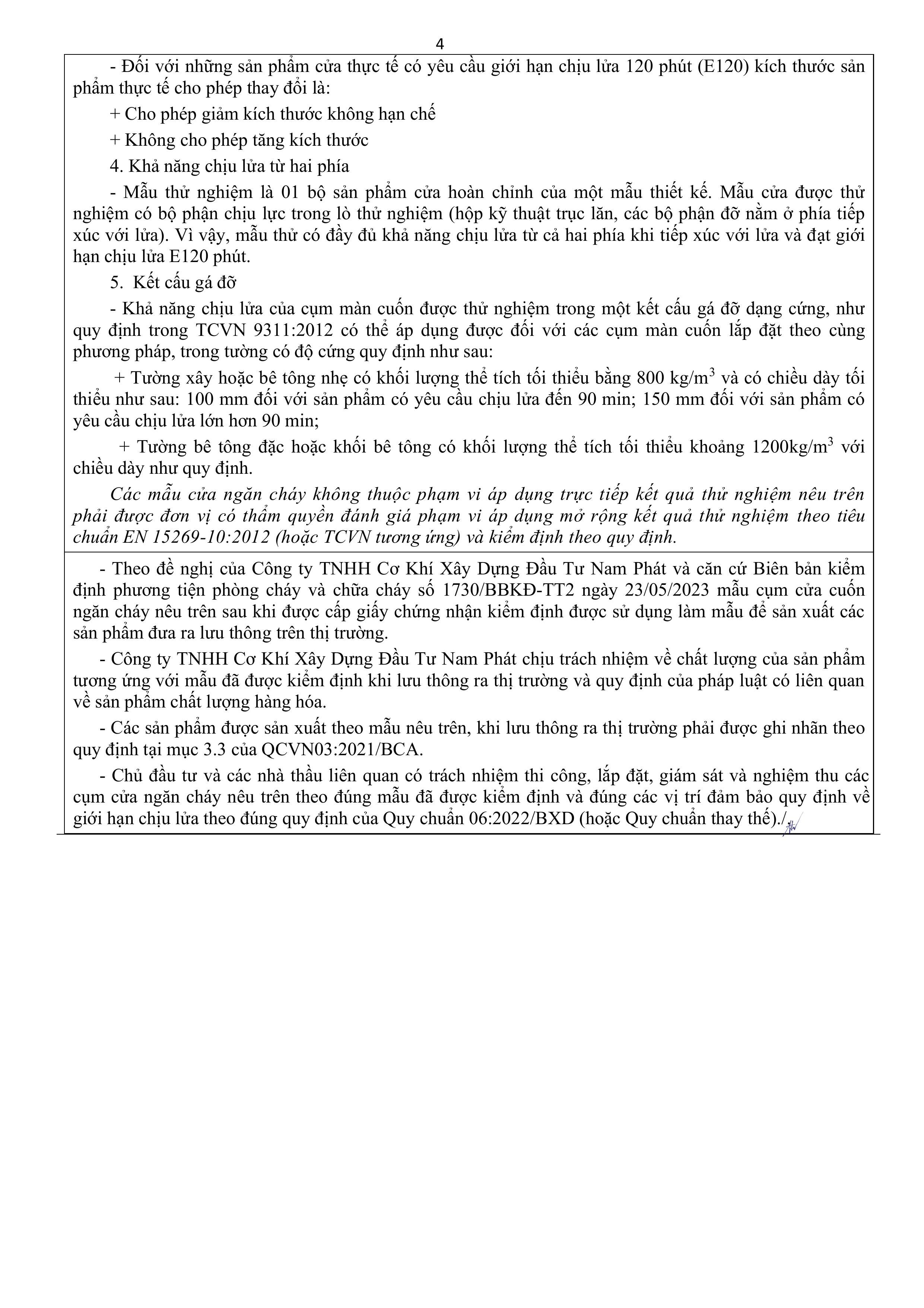 Không áp dụng kết quả thử nghiệm cho cửa kính, cửa nhôm (chỉ áp dụng cho mẫu tương đồng vật liệu thép đã thử)
